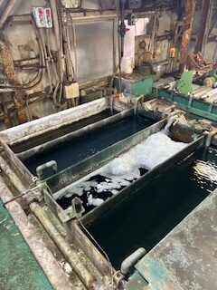 部品の穴にかけて脱脂→酸洗い→電解脱脂→メッキ→クロメート処理という順序でメッキをコーティングします。